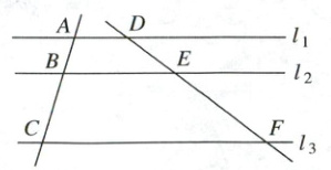 (2025·四川乐山)如图,$ l_1 // l_2 // l_3 $,$ AB = 2 $,$ DE = 3 $,$ BC = 4 $,则 $ EF $的长为(