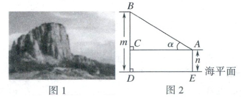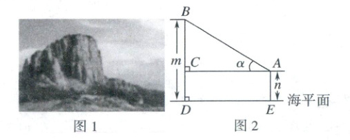 1.(2025·长春)如图,已知某山峰(如图1)的海拔为$ m $米,一位登山者到达海拔为$ n $米的点$ A $处,测得山峰顶端$ B $的仰角为$ \alpha $,则$ A,B $两点之间的距离为 (