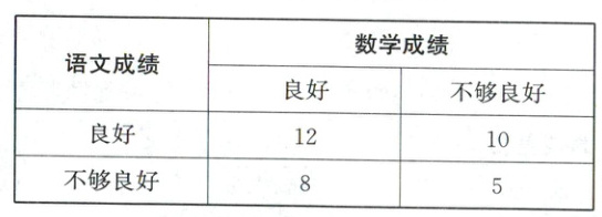 16. (15 分)某教育教研机构为了研究学生理科思维和文科思维的差异情况,对某班级 35 名同学的数学成绩和语文成绩进行了统计并整理成如下 $ 2 × 2 $ 列联表(单位:人):