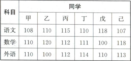 27. 甲、乙、丙、丁、戊、己六位同学中考语文、数学、外语的成绩如表: