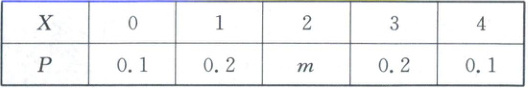 3.ABD【解析】离散型随机变量的分布列+期望+方差 由离散型随机变量的分布列性质可得$m = 1 - 0.1 - 0.2 - 0.2 - 0.1 = 0.4$,故A正确;$E(X)=0×0.1+1×0.2+2×0.4+3×0.2+4×0.1 = 2$,$D(X)=(0 - 2)^2×0.1+(1 - 2)^2×0.2+(2 - 2)^2×0.4+(3 - 2)^2×0.2+(4 - 2)^2×0.1 = 1.2$,故B正确;由于$Y = 2X + 1$,故$E(Y)=2E(X)+1 = 5$,$D(Y)=4D(X)=4.8$,故C错误,D正确。故选ABD。