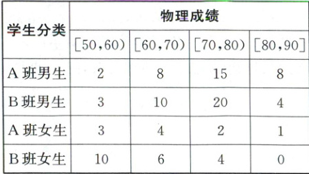 8. 某兴趣小组,对高三刚结束的测试的物理成绩进行随机调查,在所有选择物理科的考生中随机抽取 $100$ 名各类考生的物理成绩,整理数据如下表(单位:人).