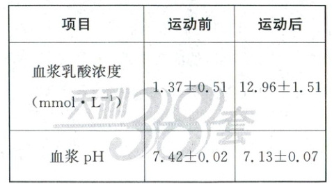 14. 正常人血浆$pH$为$7.35~7.45$。研究人员测定15名运动员全力快蹬功率车$60\ s$前、后其血浆乳酸浓度和$pH$,结果如表,下列说法错误的是(