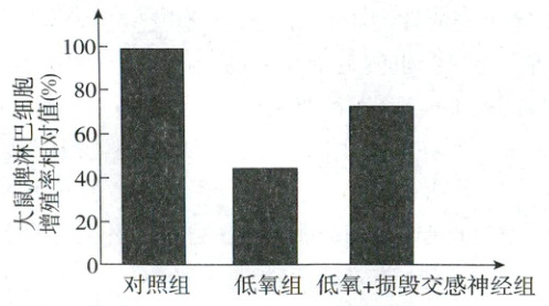 13. 为研究低氧应激条件下交感神经对脾淋巴细胞增殖的影响,研究人员以大鼠为实验材料做了三组实验,结果如图所示: