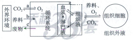 (1)由图可知,系统a能与外界环境进行气体交换,所以a表示呼吸系统;养料通过b系统进入循环系统,b系统为消化系统;代谢废物由c系统排出,c系统为泌尿系统。除了图中所示的器官、系统的协调活动外,内环境的相对稳定还必须在神经—体液—免疫的调节下进行。