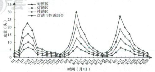 C.实验结果显示灯光诱杀和性引诱剂诱杀组