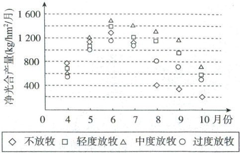 )A.4月份不放牧情况下牧草净光合产量最高,
