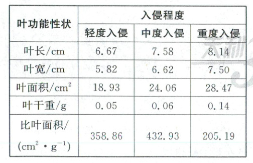 15. 为探究叶的功能性状与生物入侵机制的关系,