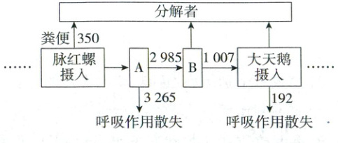→脉红螺→大天鹅,能量流经第二营养级脉