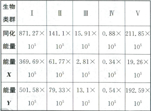物链中不同的营养级,Ⅴ表示分解者,能量Y是