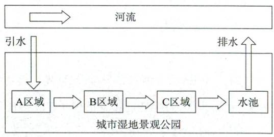 15.D 生态工程、生态系统的能量流动、生物多样性及其保护、人类活动对生态环境的影响 由于本地物种对当地的生态环境适应能力强,优先选择本地物种进行生态修复有利于修复的成功,这体现了生态工程建设的协调原理,A正确;引种挺水植物和沉水植物治理污水,既可以优化景观,又可以改善水质,分别体现了生物多样性的直接价值和间接价值,B正确;该城市湿地景观公园对引进的河水有净化作用[划重点:生态系统具有自我调节能力,负反馈调节是生态系统自我调节能力的基础,一般来说,生态系统的组分越多,食物网越复杂,其自我调节能力就越强,抵抗力稳定性就越高,恢复力稳定性就越低],植物吸收水中的氮、磷,因此排水口水样中总氮、磷含量下降,有毒物质减少,“水华”出现概率降低,C正确;生态系统中能量流动是单向流动、逐级递减的,所以要维持生态系统的正常功能,需要从系统外持续输入能量,D错误。