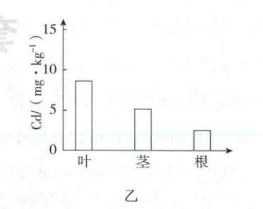 (5)由图可知,叶中Cd含量最多,说明其吸收Cd的能力最强,最有利于缓解土壤Cd污染;乔木根系发达,吸收Cd元素能力强,乔木是多年生植物,能更长时间吸收Cd,所以杨树这种乔木可以作为Cd污染土壤修复植物。