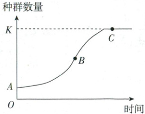 13.B种群数量曲线分析 “S”形曲线是数学模型的一种表现形式,优点是形象直观,A正确;“S”形曲线的增长速率为先增后减,减为0后保持不变,种内竞争对种群数量的调节作用可以导致种群增长速率下降,也可以保持不变,B错误;由图可知,在B点,种群数量为K/2,此时种群增长速率最大,野生资源种群数量维持在B点左右,可获得最大持续利用量,C正确;K值的大小受环境条件的制约,其他条件不变,增加A点种群数量不会导致环境容纳量改变,D正确。