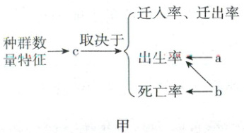(1)种群密度是种群最基本的数量特征,因此c为种群密度;a通过影响出生率影响种群密度,可知a为性别比例。b通过影响出生率和死亡率影响种群密度,因此b为年龄结构。