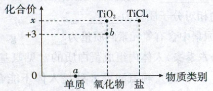 18. (2025·江苏扬州)四氯化钛($TiCl_{4}$)是制备钛白粉的主要原料。$TiCl_{4}$中钛元素的化合价为(