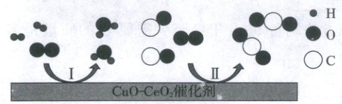 10. (2025·福建,节选)(2)$CuO - CeO_{2}$催化剂可以实现有关反应的分阶段进行,其微观示意图如下。