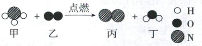 15.C 【解析】化学反应的微观示意图 首先写出对应的化学方程式:$4NH₃+3O₂\overset{点燃}{\longrightarrow}2N₂+6H₂O[$关键点]。NH₃的水溶液呈碱性,能使酚酞变红,A正确;根据化学方程式可知,乙是氧分子,B正确;反应前后分子总数之比为(4+3):(2+6)=7:8,反应后分子数增加,C错误;产物是N₂和H₂O,都不是污染物,D正确。