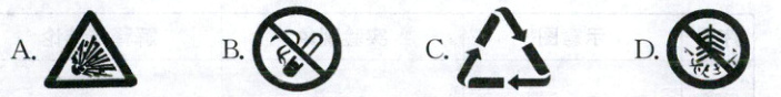 16.D【解析】常见的化学图标 A表示禁止吸烟标志,B表示