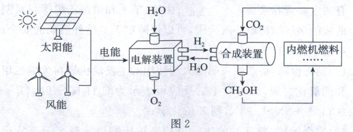 (3)我国“液态阳光”技术以二氧化碳和氢气为原料,在催化剂作用下合成液体燃料甲醇($CH_{3}OH$),生产过程如图2所示。