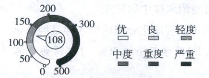 (1)图中箭头指向的数值范围:100~150,为轻度,故其空气质量状况为轻度污染。