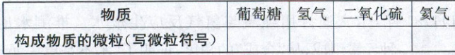 构成物质的微粒(写微粒符号) C₆H₁₂O₆ H₂ SO₂ He