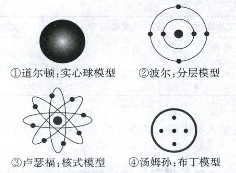 (1)科学家道尔顿首先提出的原子结构是实心球模型,之后科学家汤姆孙发现了电子,提出布丁模型,后来科学家卢瑟福又通过α粒子散射实验,提出了核式结构模型,再后来科学家波尔提出了分层模型。