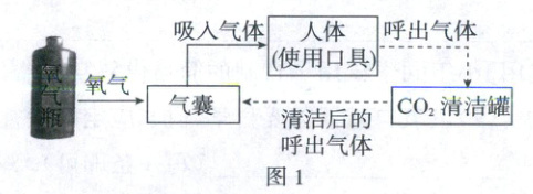 【分析原理】为防止人体吸入有害气体,使用自救器时夹住鼻子,只用嘴呼吸,使气体在"气囊→人体→$CO_2$清洁罐→气囊"间形成循环(如图 1 所示)。