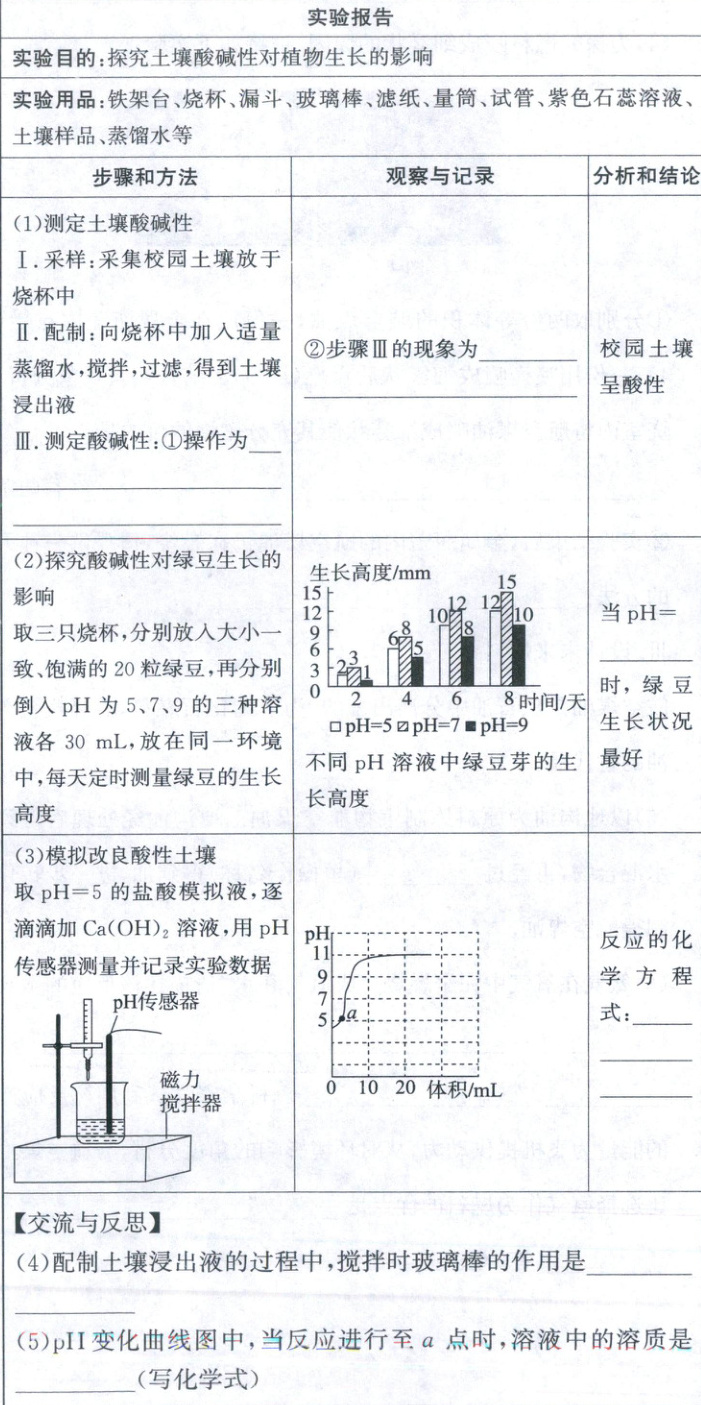 29. 【新考法·实验报告】(2025·广东深圳福田适应考)某小组探究了土壤酸碱性对植物生长的影响,形成以下报告。