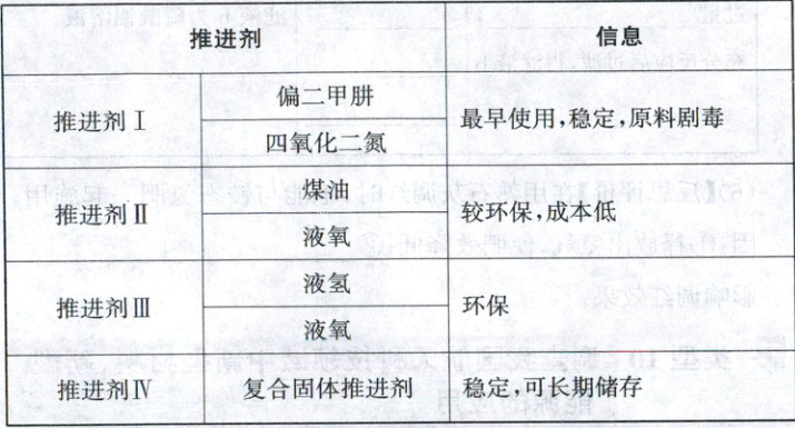 (4)在长征系列火箭中,推进剂Ⅰ最早使用且技术成熟,利用表中信息分析。开发其他推进剂的理由是