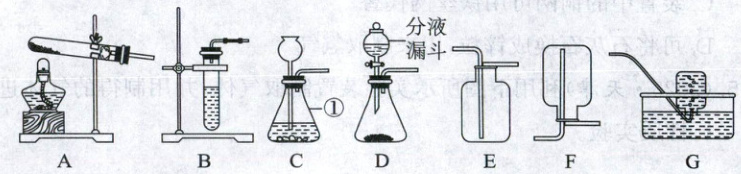 (6)用装置A制取气体时试管口略向下倾斜,防止冷凝水倒流炸裂试管,A正确;装置C中长颈漏斗下端插入液面以下,是为了防止生成的气体从长颈漏斗逸出,B正确;用装置G(排水法)收集气体时,应在导管口气泡连续均匀冒出时开始收集,C错误;用装置A、G制取并收集气体,实验结束时先撤导管再熄灭酒精灯,防止水槽中的水倒流进人热的试管,使试管炸裂,D正确。