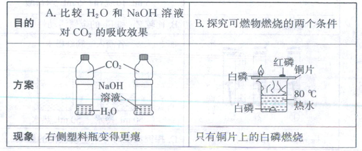 A √ 相同条件下,等体积的NaOH溶液和H₂O吸收CO₂时,NaOH吸收CO₂的量比H₂O多,所以右侧(盛有NaOH溶液)的塑料瓶变得更瘪