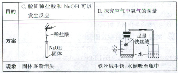 C × 仅根据固体逐渐消失无法证明稀盐酸与NaOH发生反应,如:往试管内加水时,固体也逐渐消失,但水与NaOH不反应