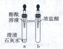 ;再将浓盐酸滴入 b 中,一段时间后,a 中溶液褪色,说明 Ca(OH)₂与 HCl 发生了反应,化学方程式为$Ca(OH)_{2}+2HCl=CaCl_{2}+2H_{2}O$