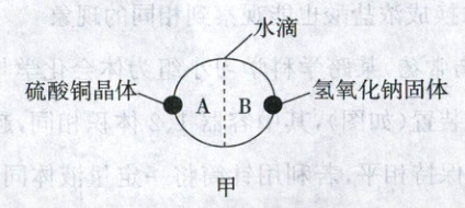 (1)如图甲所示:在直径约为 1.5 cm 的水滴两边,同时放少量硫酸铜晶体、氢氧化钠固体。已知:相对分子质量越大,微粒运动越慢,反之越快。实验中在