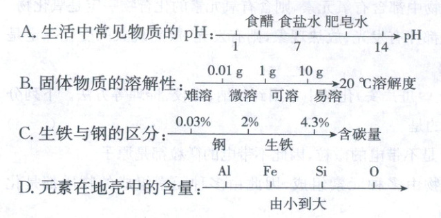 8. (2024·山东泰安)用数轴表示某些化学知识更加直观、简明、易记。下列表示错误的是(
