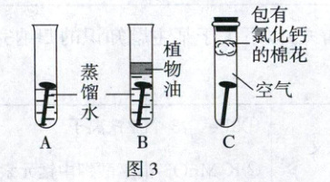 (3)图 3 探究铁钉锈蚀条件实验中,蒸馏水需煮沸并迅速冷却,煮沸的目的是______。几天后观察,能证明铁钉锈蚀与水有关的现象是______。