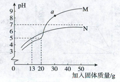 (填“生石灰”或“石灰石”)。(2)曲线N加入13g固体与曲线M加入
