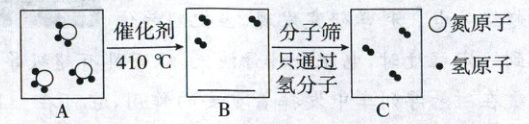 (3)氨释放H₂的微观示意图如下。请在B对应框中将除氢分子外的微观粒子补充完整。