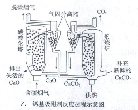 为了捕集热电厂、炼钢厂等排放烟气中的CO₂,化学工程师开发了捕集CO₂技术(图乙),所用的初始原料石灰石来源广泛、价格低廉,获得的高纯度CO₂广泛应用于工业、农业、食品、医药、消防等领域。