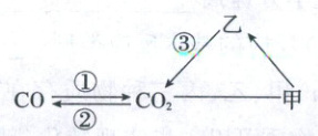 7.C [解析]物质的转化 反应①可以是$2CO+O_{2}\stackrel{点燃}{=}2CO_{2}$,A正确;反应②为$CO_{2}+C\stackrel{高温}{=}2CO$,该反应吸收热量,B正确;若乙是$CaCO_{3}$,甲可以是$Ca(OH)_{2}$,发生的反应为$Ca(OH)_{2}+CO_{2}=CaCO_{3}\downarrow+H_{2}O$,$CaCl_{2}$不能和$CO_{2}$反应,C错误;若甲是$H_{2}O$、乙是$O_{2}$,反应③可以是化合反应,即$C+O_{2}\stackrel{点燃}{=}CO_{2}$;若甲是$Ca(OH)_{2}$、乙是$CaCO_{3}$,则③可以是分解反应,即$CaCO_{3}\stackrel{高温}{=}CaO+CO_{2}\uparrow$,③也可以是复分解反应,即$CaCO_{3}+2HCl=CaCl_{2}+H_{2}O+CO_{2}\uparrow$,D正确。