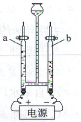 ②在如图所示电解器玻璃管中加满水,通电一段时间后,a管中产生3mL气体时,b管中产生的气体体积约为____mL。切断电源,用燃着的木条分别在玻璃管尖嘴口检验电解产生的气体,观察到____(填“a”或“b”)管中气体使木条燃烧更旺,另一管中气体可燃。