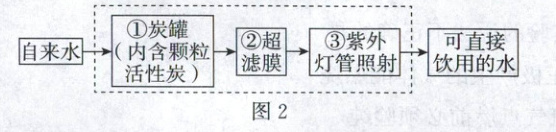 (3)了解水的净化:小明同学观察到学校、车站等公共场所安装有直饮水机,他了解到直饮水机是将自来水净化为可直接饮用的水,其净水原理如图2所示。图中步骤③的目的是