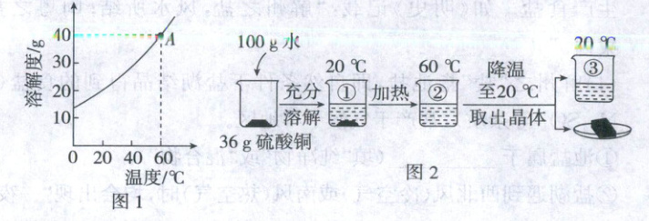 (3)60℃时,硫酸铜的溶解度为40g,溶液②可看作是60℃时100g水中加入36g硫酸铜形成的溶液,为不饱和溶液。