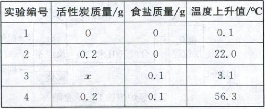 16. (2025·江苏苏州)为验证活性炭或食盐能加快铁粉生锈速率,进行实验。下表是2g铁粉、5g水与不同质量活性炭、食盐均匀混合后,在10分钟内温度上升的实验记录。