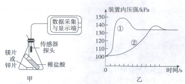 6.【新考法·数字化实验】(2024·四川德阳)室温时,利用压强传感器研究质量相同的一块镁片和一块锌片分别与等浓度、等质量的稀盐酸反应的实验如图甲,压强传感器测得装置内压强随时间的变化关系如图乙。下列说法正确的是(