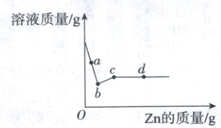 24. (2024·山东泰安)向一定质量AgNO₃和Cu(NO₃)₂的混合溶液中加入Zn,溶液质量与加入Zn的质量关系如图所示,下列说法错误的是(