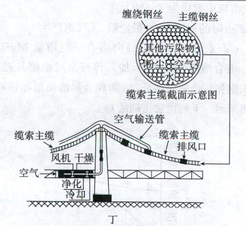 ②某桥梁主缆采用ZnAlMg钢丝,工程师为了缆索主缆不被腐蚀,设计了桥梁干燥系统如图丁。说明缆索主缆的防护原理____。