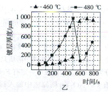 ③“镀锌铝”时,镀层厚度随浸镀时间和温度变化关系如图乙,若需生产镀层厚度900μm的锌铝镀层钢丝,最好控制时间和温度为。