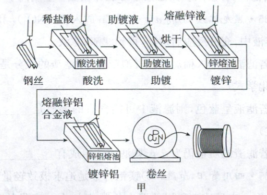 一种超高强度锌铝合金镀层钢丝生产的主要工序如图甲所示: