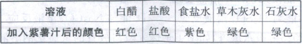 【活动1】将紫甘蓝叶研碎后加入适量酒精浸泡一段时间,用纱布将浸泡出的汁液挤出,得到紫甘蓝液。